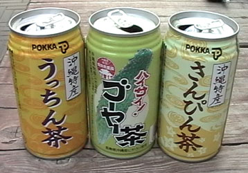 沖縄限定のお茶ドリンクを3つならべて紹介。 それぞれについて感想を書くと、意外にも一番美味しかったのはゴーヤー茶。ほどよい苦みがソバ茶にも似て心地よかった。 さんぴん茶はジャスミンティー系のお茶で、ジャスミンティーらしい甘い香りがかなり厳しかった。まあ、缶のジャスミンティーだと思えば諦めがつく味だったけれど。 一番厳しかったのはうっちん茶。なんというか、味も香りもニオイ玉。あるいは洗剤系。なんにせよ気持ち悪さを催すほど。試飲会のあとで東急ハンズに入ったとき、台所用品だったか洗剤だったかのコーナーで同じニオイを嗅いでしまい、気持ち悪さがぶりかえして来たりも。
