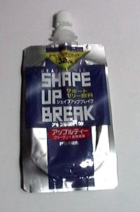 SHAPE UP BREAK アップルティー<諸元>品名/清涼飲料水(ゼリー飲料) 原材料名/りんご果汁、還元麦芽糖水飴、エリスリトール、食物繊維(グアーガム分解物)、紅茶、ソルビトール、香料、コラーゲン、ゲル化剤(増粘多糖類)、牛肉エキス、酸味料、V.C.、甘味料(ステビア)、ナイアシン、V.B6、V.B2、VB1、葉酸、VB12 バリエーション/180gソフトパック(写真) 製造者/伊藤ハム株式会社 |