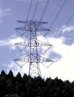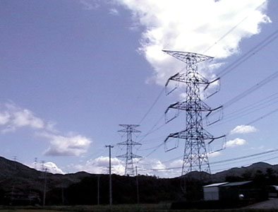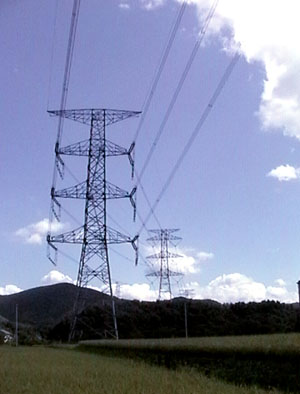 だが、宿場町での最大のヒットは集落を横切るように空に送電線を張っていた巨大な鉄塔。