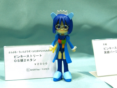 「蓬ガレージ」さんのつづき。左、天使ピンキー用パーツセット(C3 2003にて開催された「ピンキー天使コンテスト」のイメージイラストより)。右、2Kたん(OSたん)。