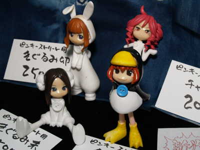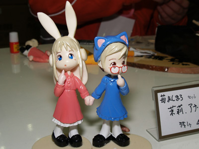 上段左、「苺ましまろ」より「アナ&茉莉」セット。上段右、「げんしけん」より「荻上」セット(くじアン制服も含む)。下段、「ローゼンメイデン」より「真紅」。