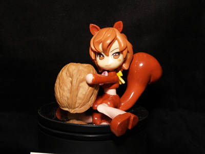左、チャイナ(後列右)及びきぐるみ卯(後列左)、きぐるみ酉(前列右)、きぐるみ未(前列左)。右はリス。